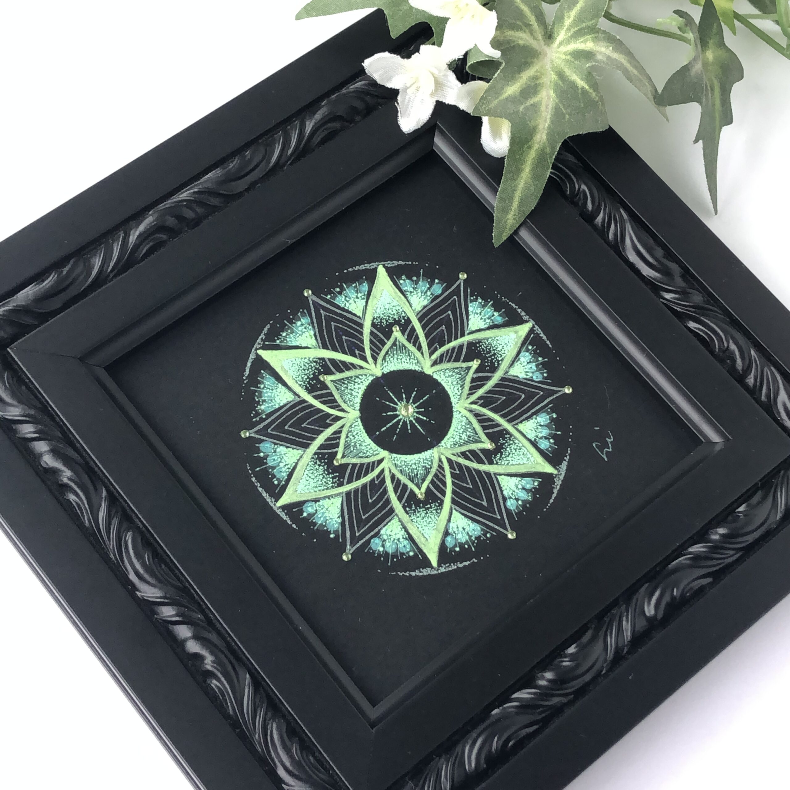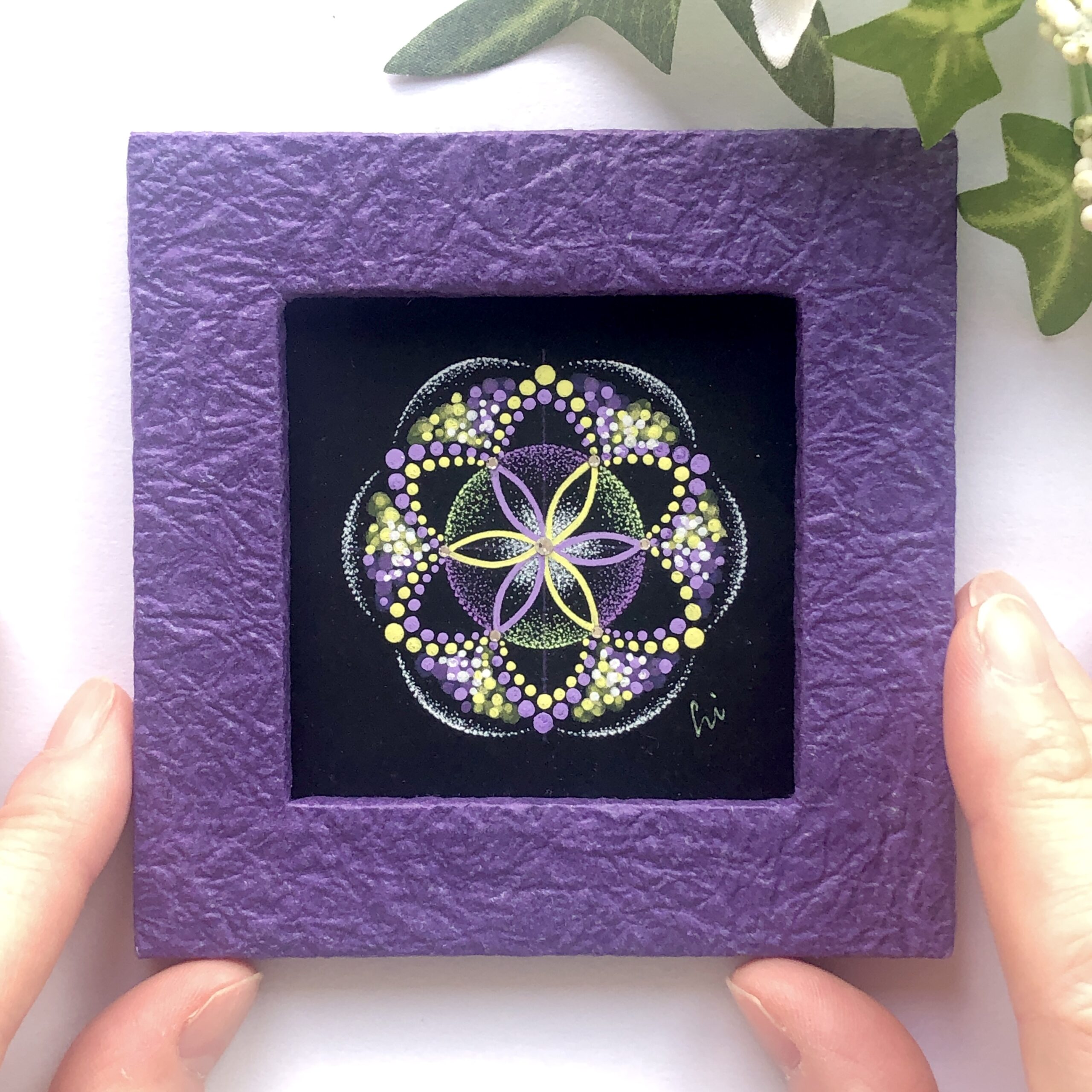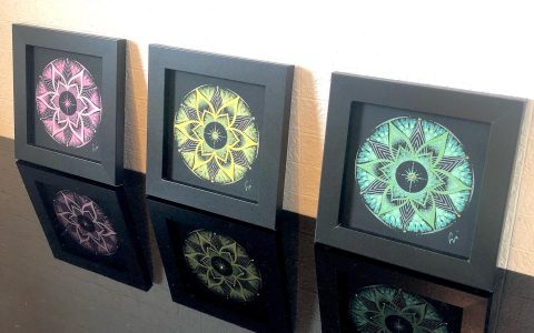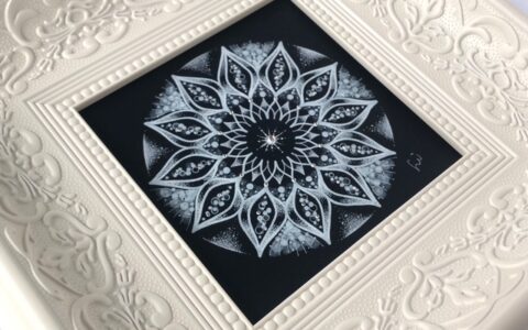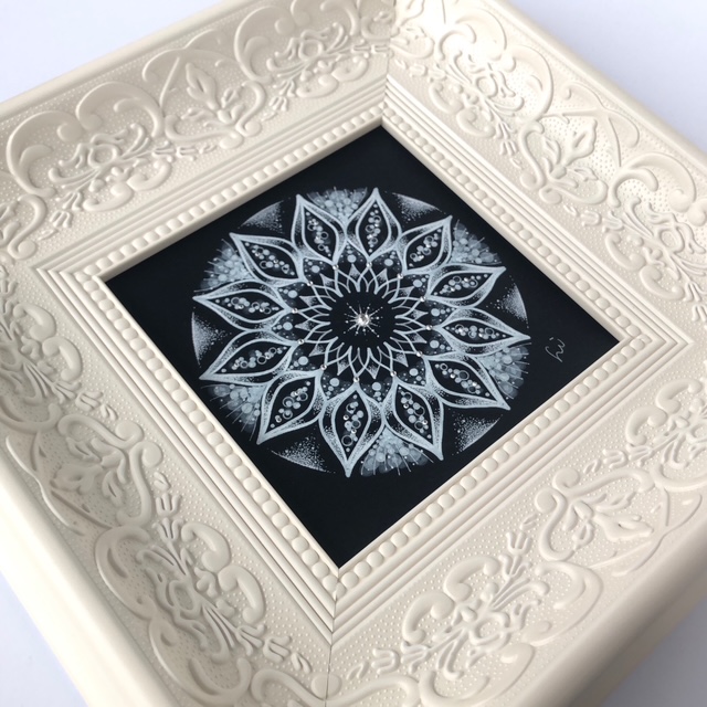 ①透明板に曼荼羅を描いてみよう 在庫2透明板に白いペンで、サンプルに沿って曼荼羅を描いて頂きます。描いた作品は、弥枝が作った手作りフレームの中から、お好きなものを選んで頂き、お花などを装飾して可愛らしく仕上げていきます。 ②曼荼羅アート講座 …