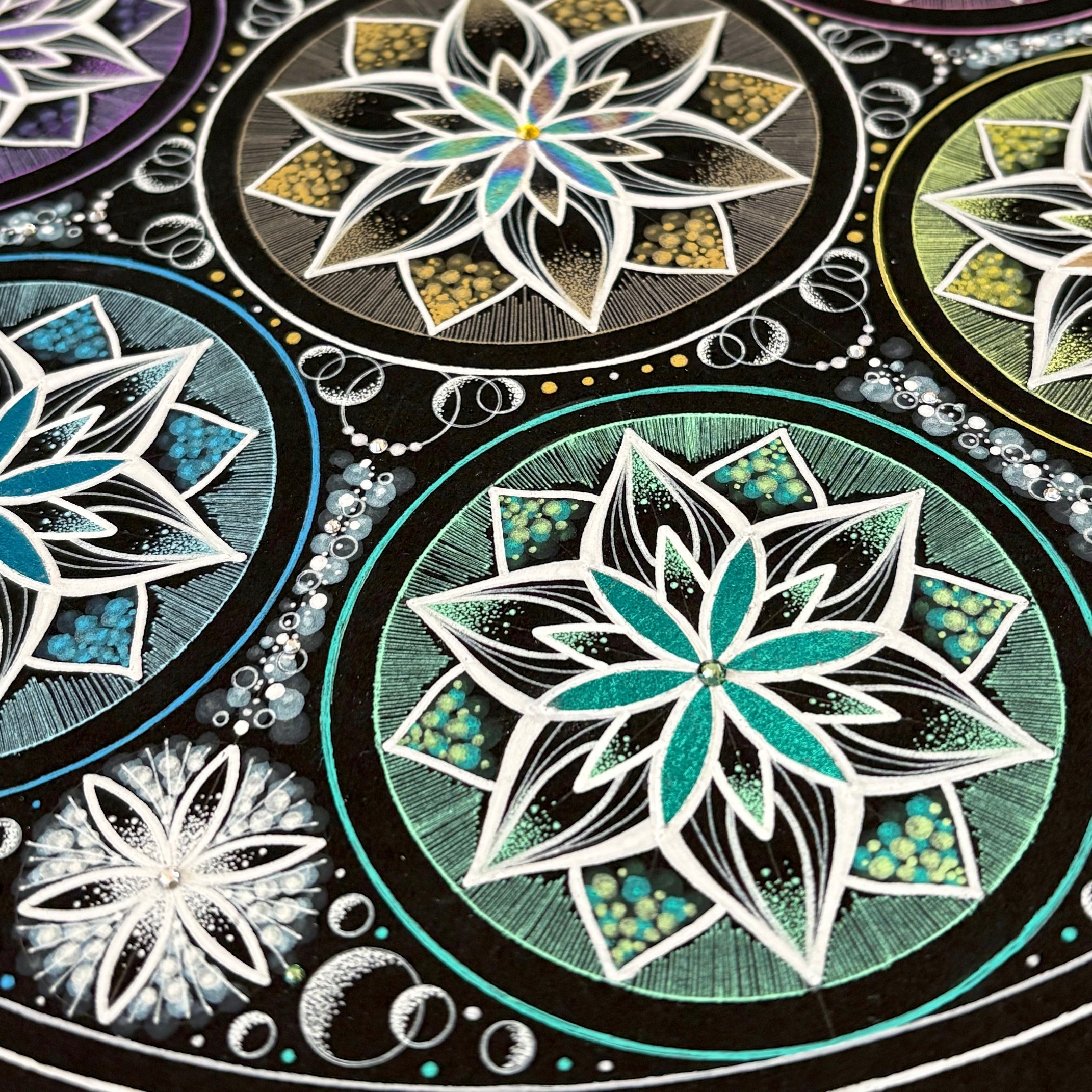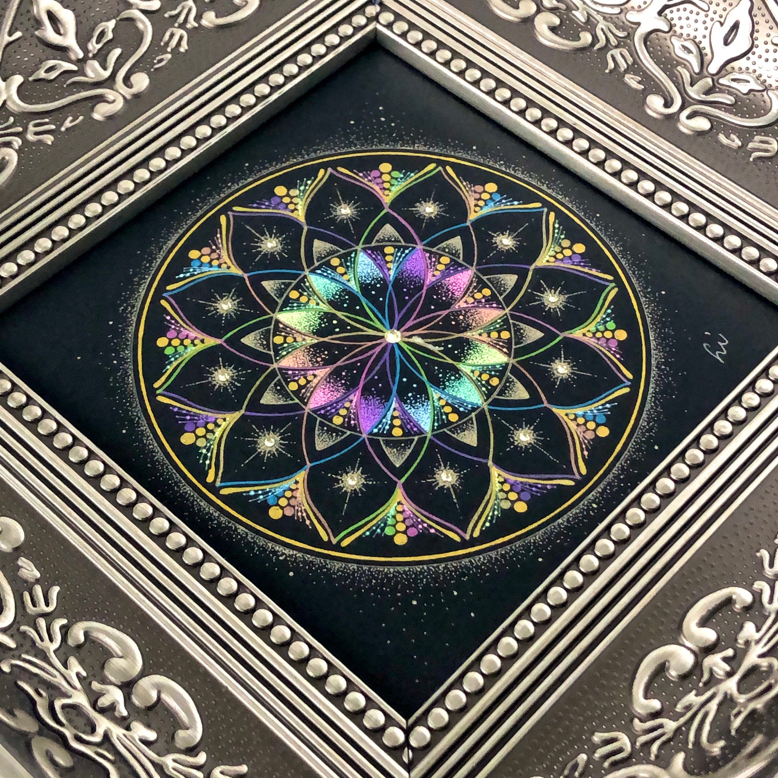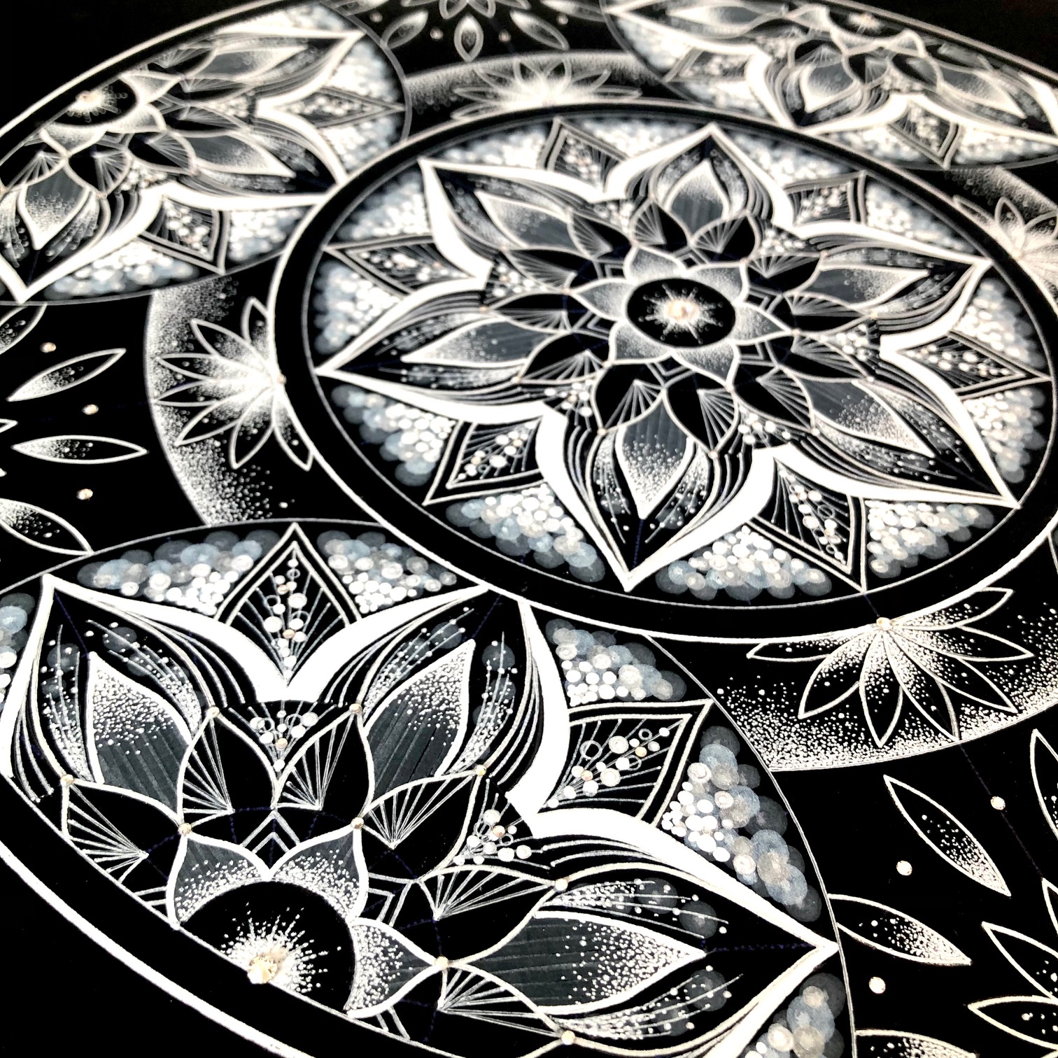 ①透明板に曼荼羅を描いてみよう 在庫2透明板に白いペンで、サンプルに沿って曼荼羅を描いて頂きます。描いた作品は、弥枝が作った手作りフレームの中から、お好きなものを選んで頂き、お花などを装飾して可愛らしく仕上げていきます。 ②曼荼羅アート講座 …